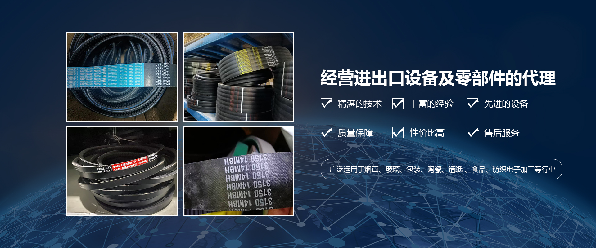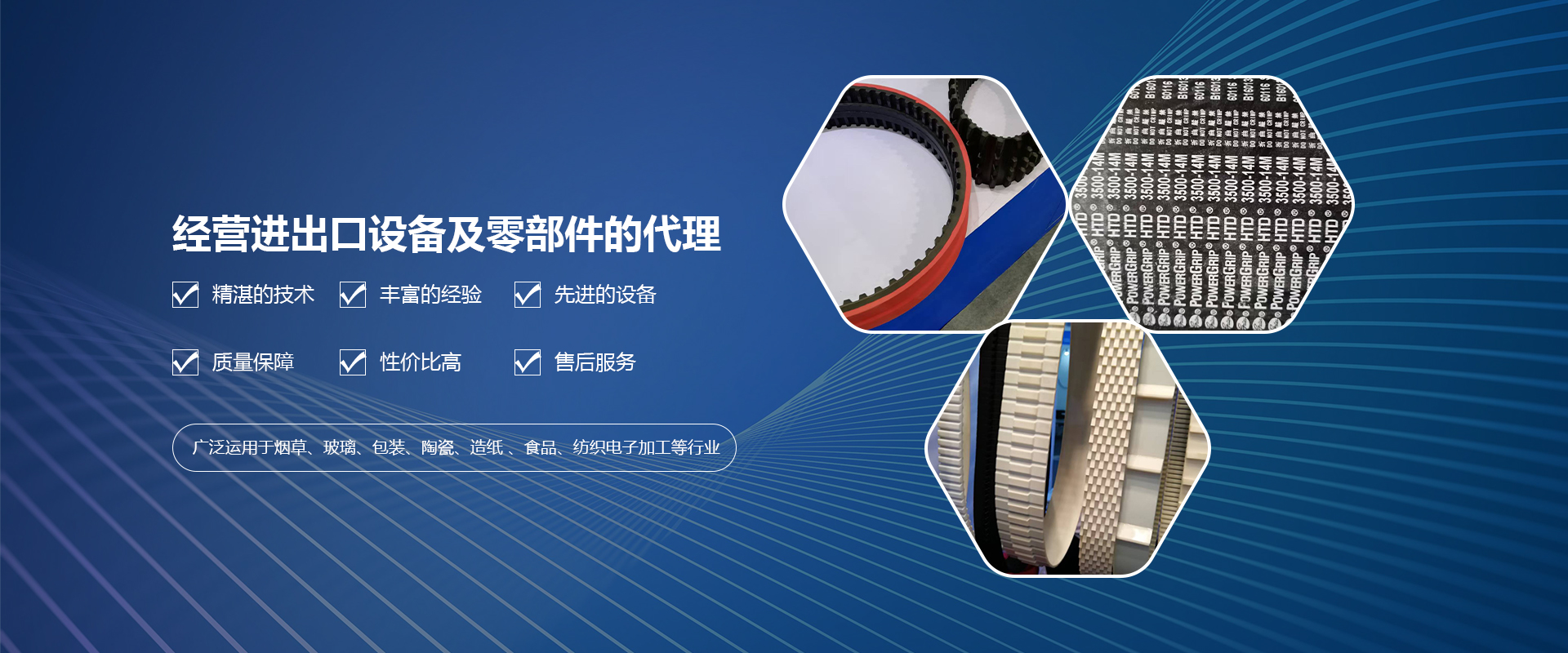 蘇州誠業貿易有限公司是一個經營進出口設備及零部件的公司,目前東南亞總代理產品有:美國麥特科金屬探測儀。并代理知名品牌的工業傳動帶和輸送帶,有精湛的技術與豐富經驗的員工,有一套完整的銷售服務體系,蘇州誠業經營的傳動帶:日本三星MITSUBOSHI、阪東Bando、UNITTA,德國奧比Optibelt,馬牌Contitech及美國Gates蓋茨,Goodyear固特異的同步帶、多楔帶、廣角帶、變速帶。德國西格林SIEGLING和瑞士哈伯斯特HABASIT,日本NITTA的平面傳動帶和輸送帶,以及BRECO和麥高迪MEGADYNE的聚氨脂同步帶及帶輪,并可根據客戶要求加載覆蓋物和載件。另外還有電纜牽引皮帶、鐵炮帶、輸紙帶、變速帶、風機帶、鋪網機帶、印花導帶、五角帶及開口同步帶,打孔帶,金屬探測儀以及密封圈等,被廣泛運用于煙草、玻璃、包裝、陶瓷、造紙 、食品、紡織電子加工等行業。愿我們的真誠服務獲得您滿意的微笑!